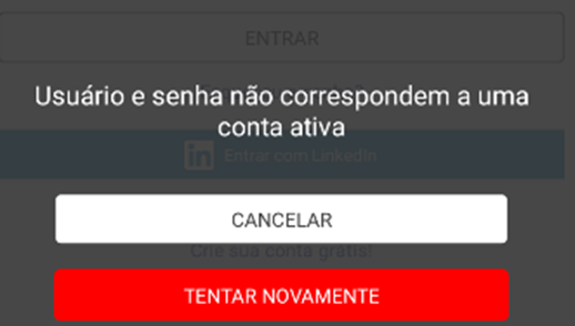 Tento acessar meu aplicativo, mas o app retorna a seguinte mensagem “Usuário e senha não correspondem a uma conta ativa”. Como proceder?