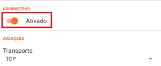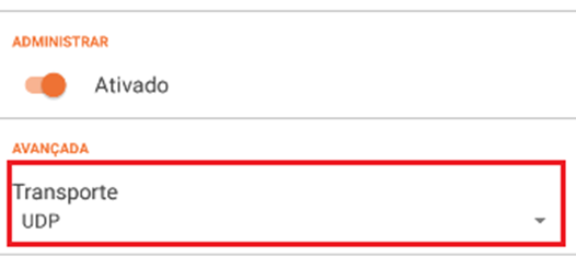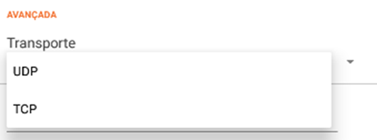 > Role a tela para baixa, em Avançada, altere as opções de UDP para TCP no campo Transporte, ou vice-versa.