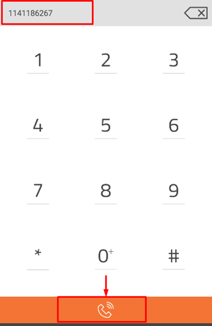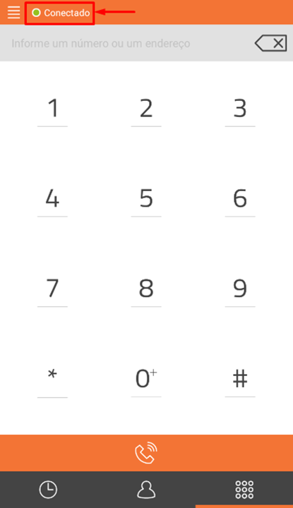 Para digitar um número ou um ramal, utilize o campo indicado e clique no botão inferior laranja para realizar a ligação.