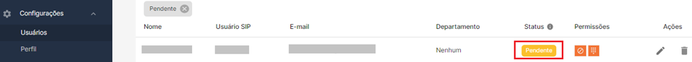 Verifique no painel se o seu usuário não está com o status Pendente, caso esteja será necessário acessar a sua caixa de e-mail e localizar o e-mail de confirmação enviado pela Nvoip. Nesse e-mail basta clicar no botão Confirmar e-mail.