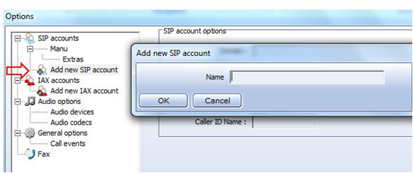 Para isso basta clicar em Add new SIP account e definir e novo nome para sua nova conta.