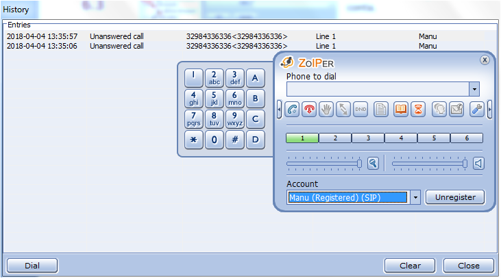 Caso queira ligar para algum número já discado anteriormente basta clicar em Histórico e apertar duas vezes no número desejado.